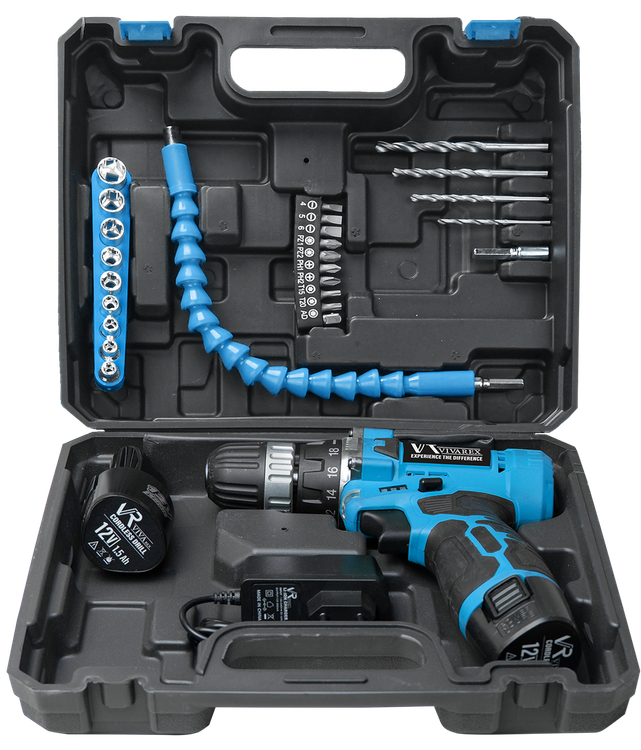 دریل پیچ گوشتی 12 ولت دو باطری همراه لوازم مدل VR1210V-22A ویوارکس